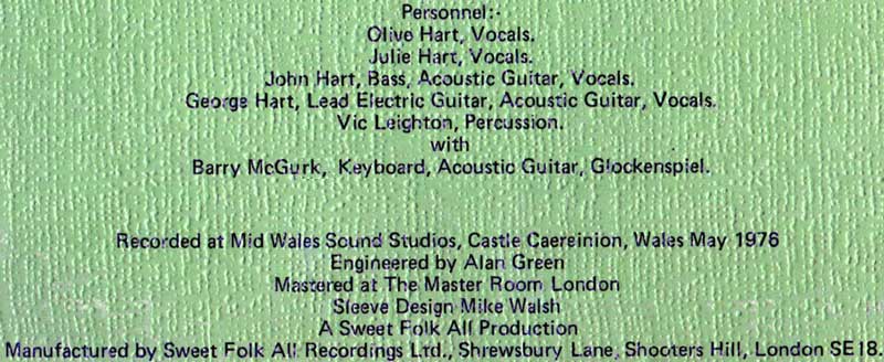 The Hart Family's LP "Hart to Heart" was released in 1976 and thanks to Kenny Leighton for providing a copy of the album to us. You can see side one and side two of the disc in the right hand column.