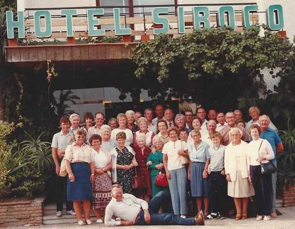 This photograph, taken in the early 80s, shows sunny Benalmadena, on the Costa del Sol, with lots of Radio Cleveland listeners. Ian Hindmarsh is laying on the floor and Colin Bunyan is far left. Ernie Brown was also on the trip and took this photo.