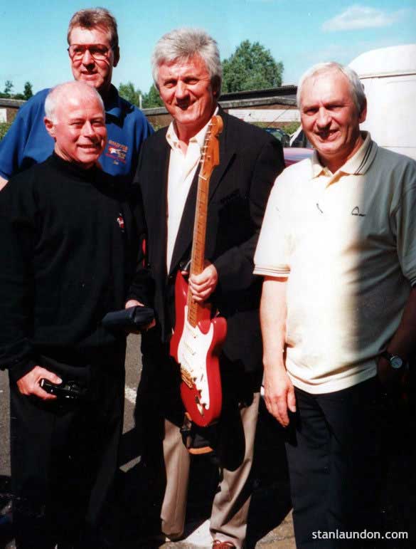 Tony Kindlan, Bruce Welch of The Shadows and Billy Talbot photographed at a "Shadz" meeting in Gateshead 2000. The gentleman is at the back is Joe Armstrong of the Tyneside Shadows Club.
