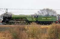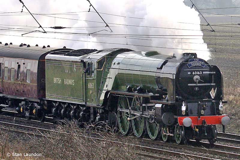 The A1 Peppercorn class "Tornado" just south of Thirsk heading towards Newcastle on March 12, 2009. Photograph © Stan Laundon.